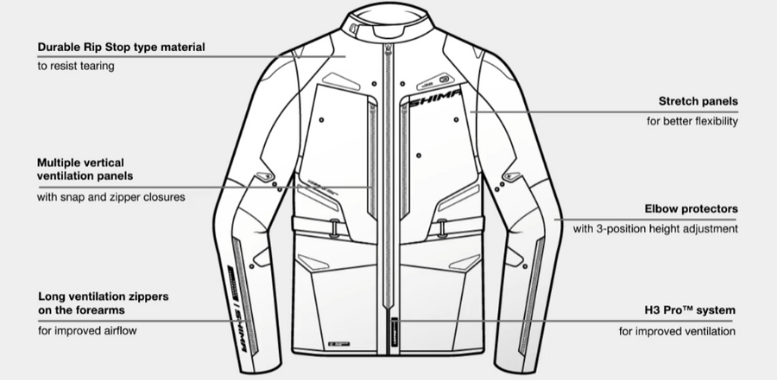 SHIMA DUNE este o jachetă ideală pentru toate anotimpurile datorită construcției sale în trei straturi. Aceasta cuprinde un strat de bază, o membrană impermeabilă NextDry™ și o vestă izolatoare, permițând adaptarea ușoară la condițiile meteorologice schimbătoare. Sistemul H3 Pro™ permite deschiderea rapidă a circulației aerului, fără a fi nevoie să acționați fermoarele. Panourile multiple de ventilație verticală, situate pe piept și pe spate, precum și fermoarele lungi de ventilație de pe antebrațe, garantează o ventilație excelentă și confort termic atunci când călătoriți în zilele mai calde.